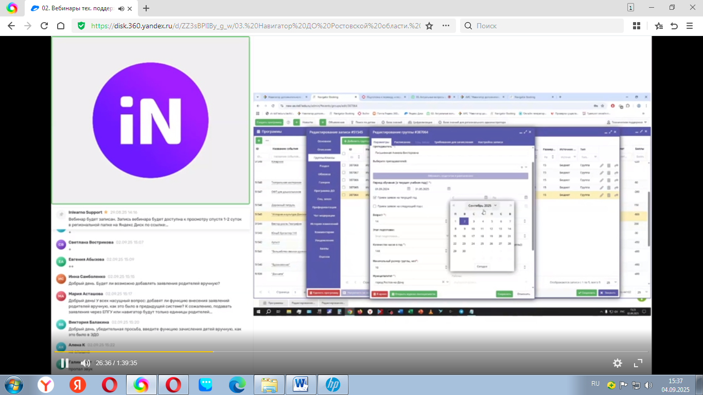 - 02.09.2025 Региональный модельный центр дополнительного образования детей и специалисты службы технической поддержки Навигаторов ДО провели вебинар по теме «Актуальные вопросы работы в Навигаторе»